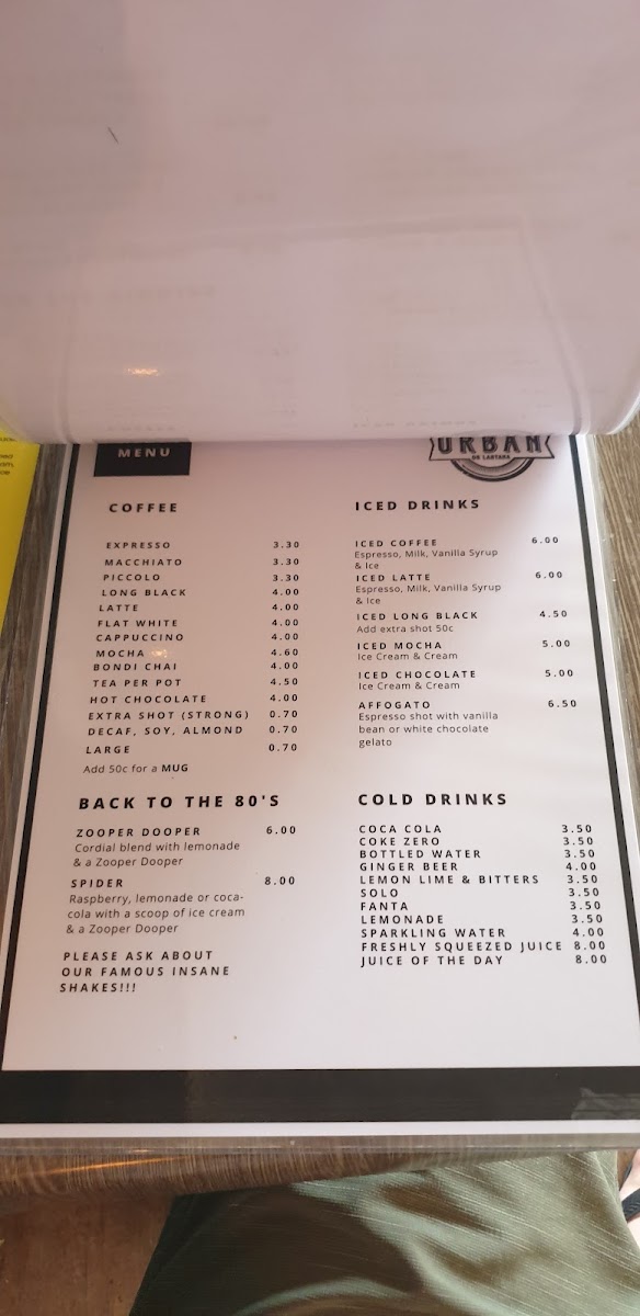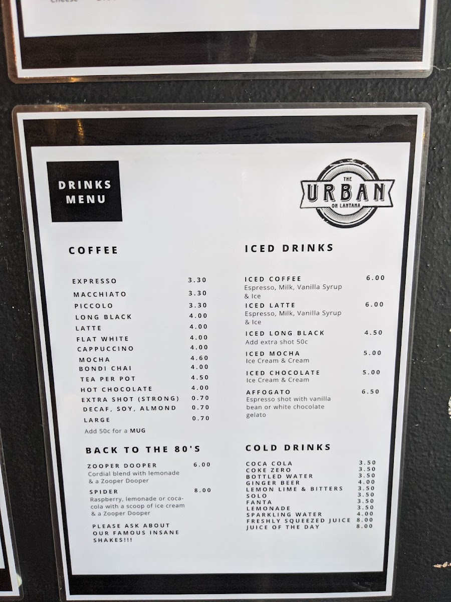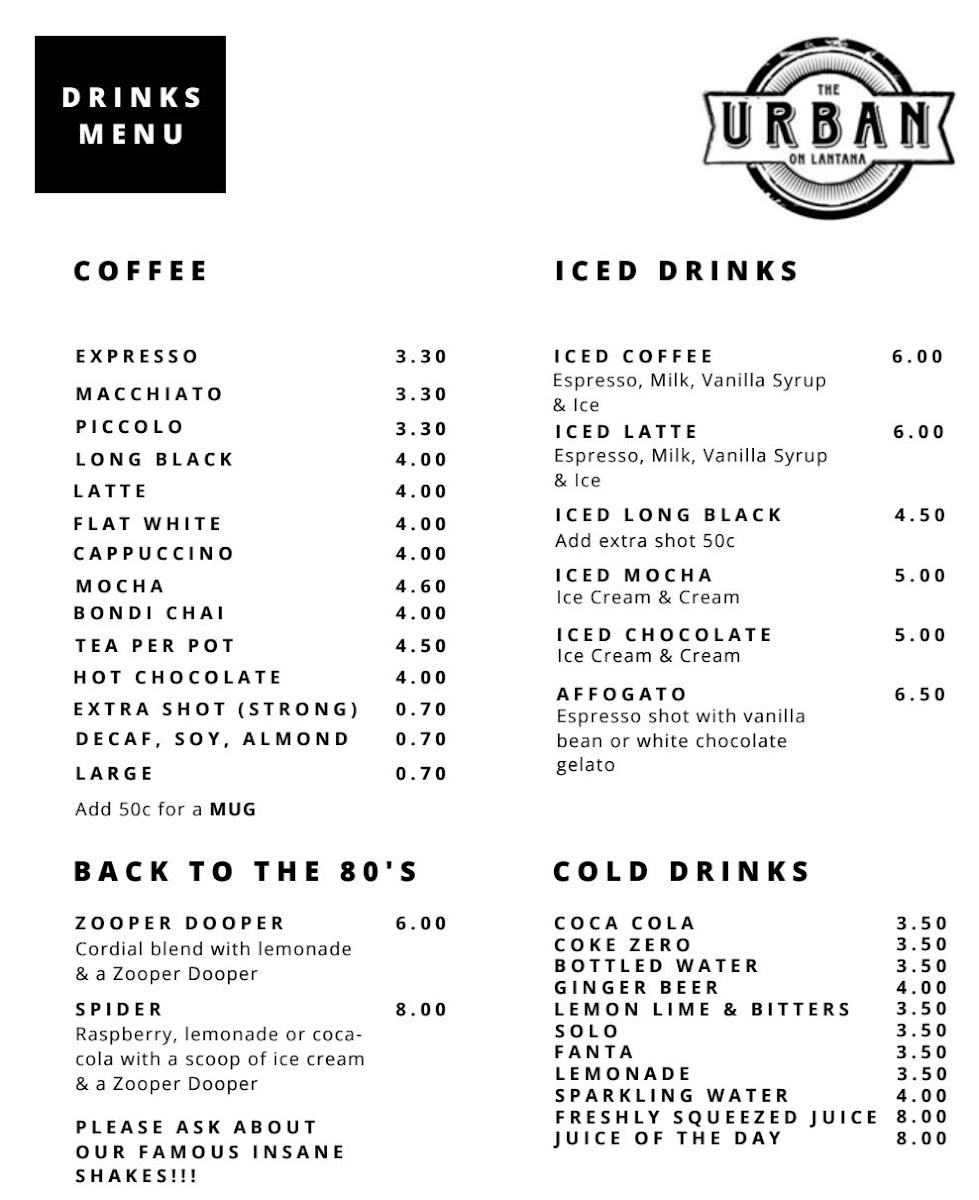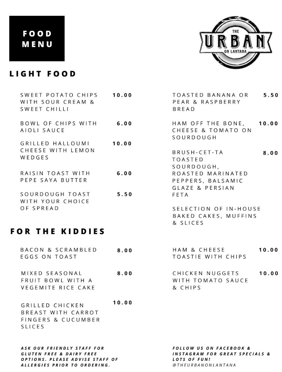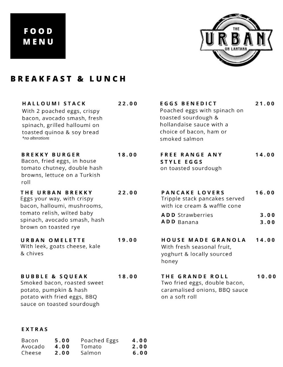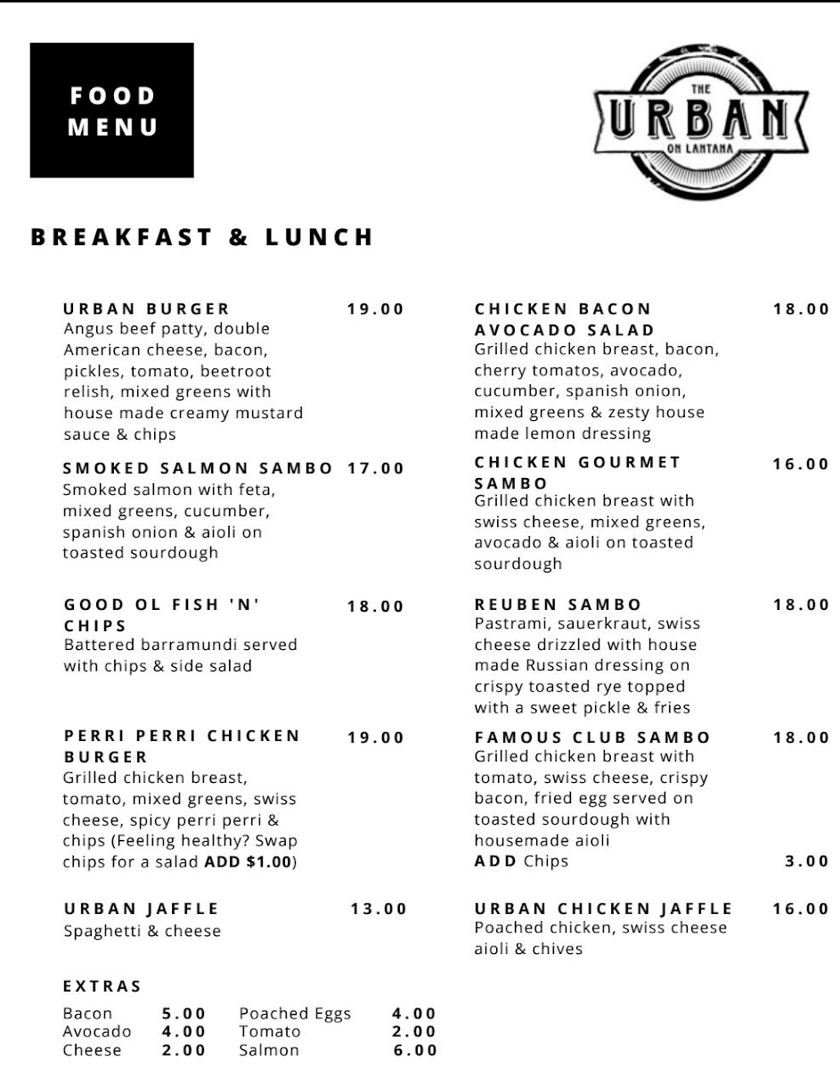 The Urban on Lantana Menu