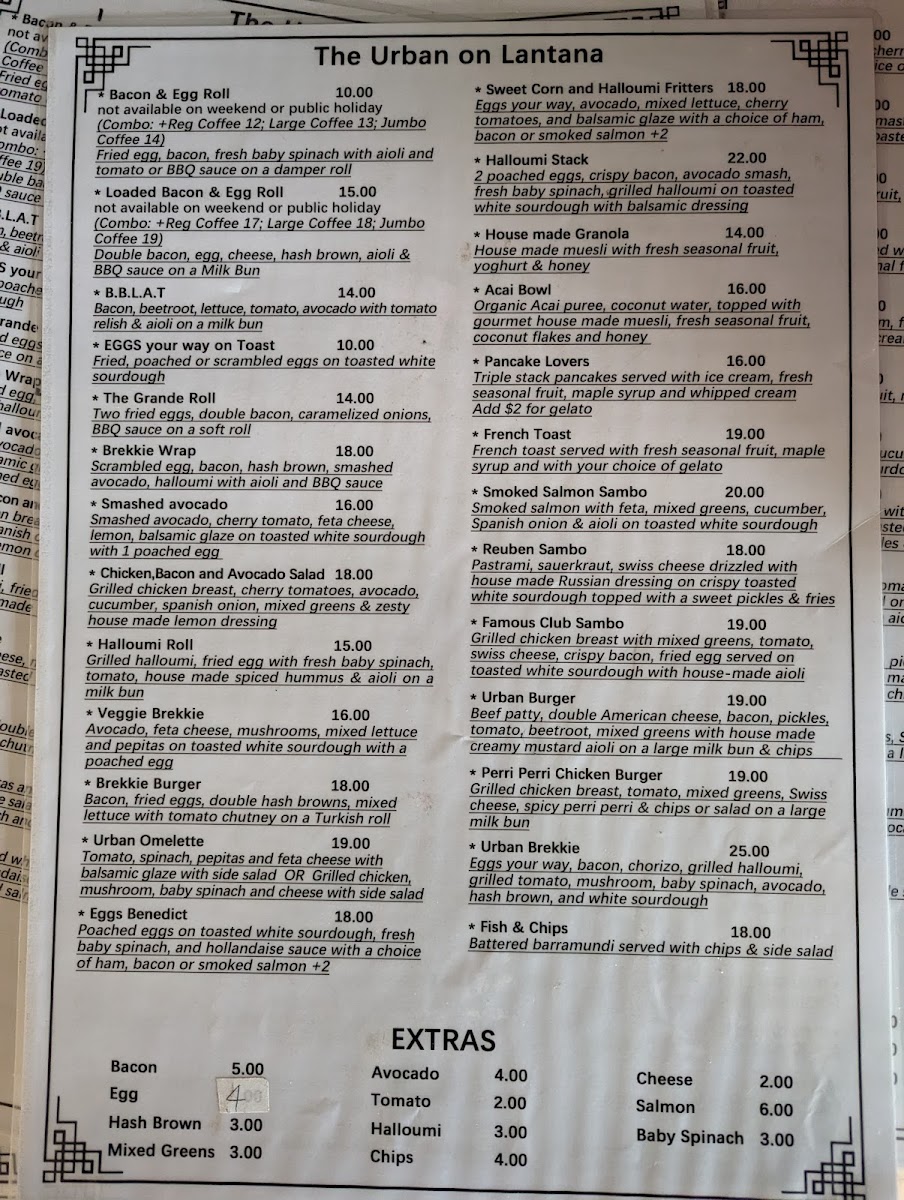 For a robust lunch, the Urban Omelette—featuring feta, pepita, and balsamic glaze—is a standout. Pair it with a well-crafted Cappuccino or a rich Dirty Chai, both expertly made with care. The café's ambiance is complemented by contemporary music, enhancing its inviting atmosphere. Regulars note the friendly yet leisurely service, making it an ideal spot for casual brunch catch-ups. Whether you're indulging in corn and salmon fritters or enjoying iced coffee on a sunny Sunday, The Urban on Lantana promises a delightful culinary experience.